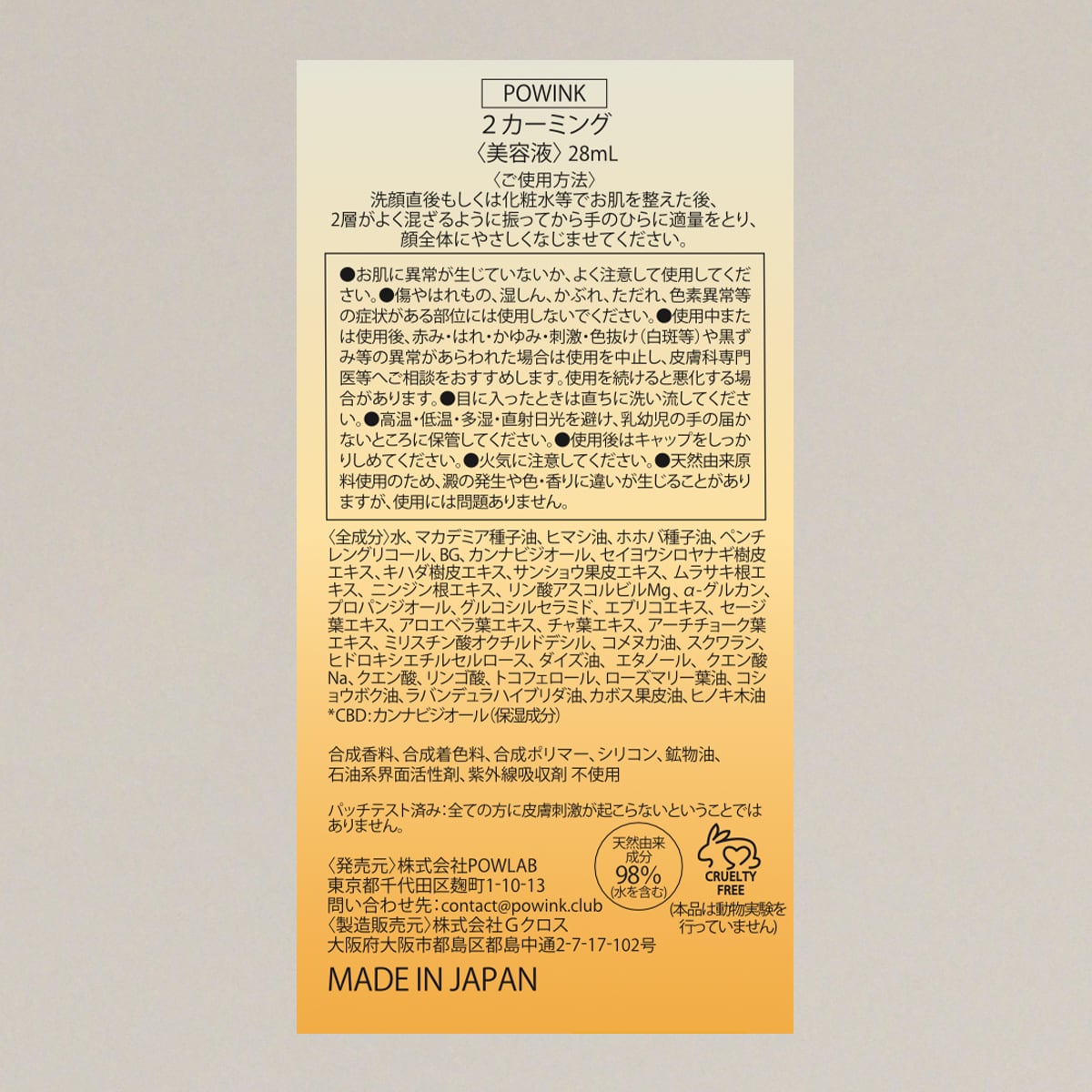 *化粧水後の美容液としてだけでなく、洗顔後すぐ使う導入美容液としてもお使いいただけるマルチタイプの2層美容液です。使用しているCBD(カンナビジオール)は、国内法令に基づいた製品であり安心してご使用いただけます。
